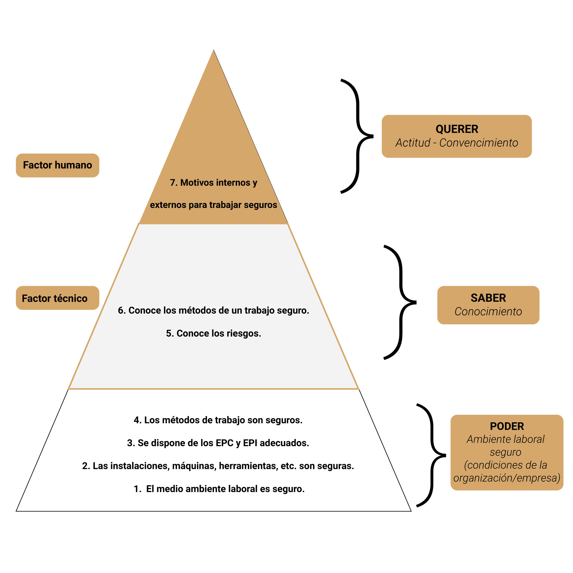 La base de la pirámide, asociada a las condiciones laborales que proporciona la empresa, es esencial para alcanzar la excelencia operacional y lograr efectividad en la aversión al riesgo laboral.